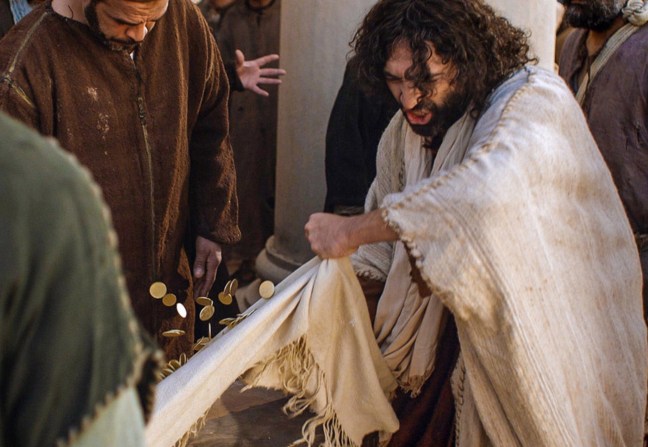 “So He made a whip out of cords, and drove all from the temple courts, both sheep and cattle; He scattered the coins of the money changers and overturned their tables.” John 2:15