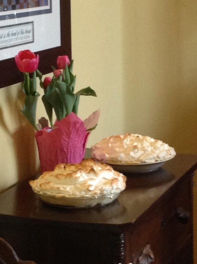Do you enjoy pie? My hubby would much rather eat a piece or two of pie than an entire cake. There is something about the crust and filling or artfully piled and swirled meringue that really appeals to him. Hmm, me too. In fact I could go for a piece with my coffee right now. How about you?
